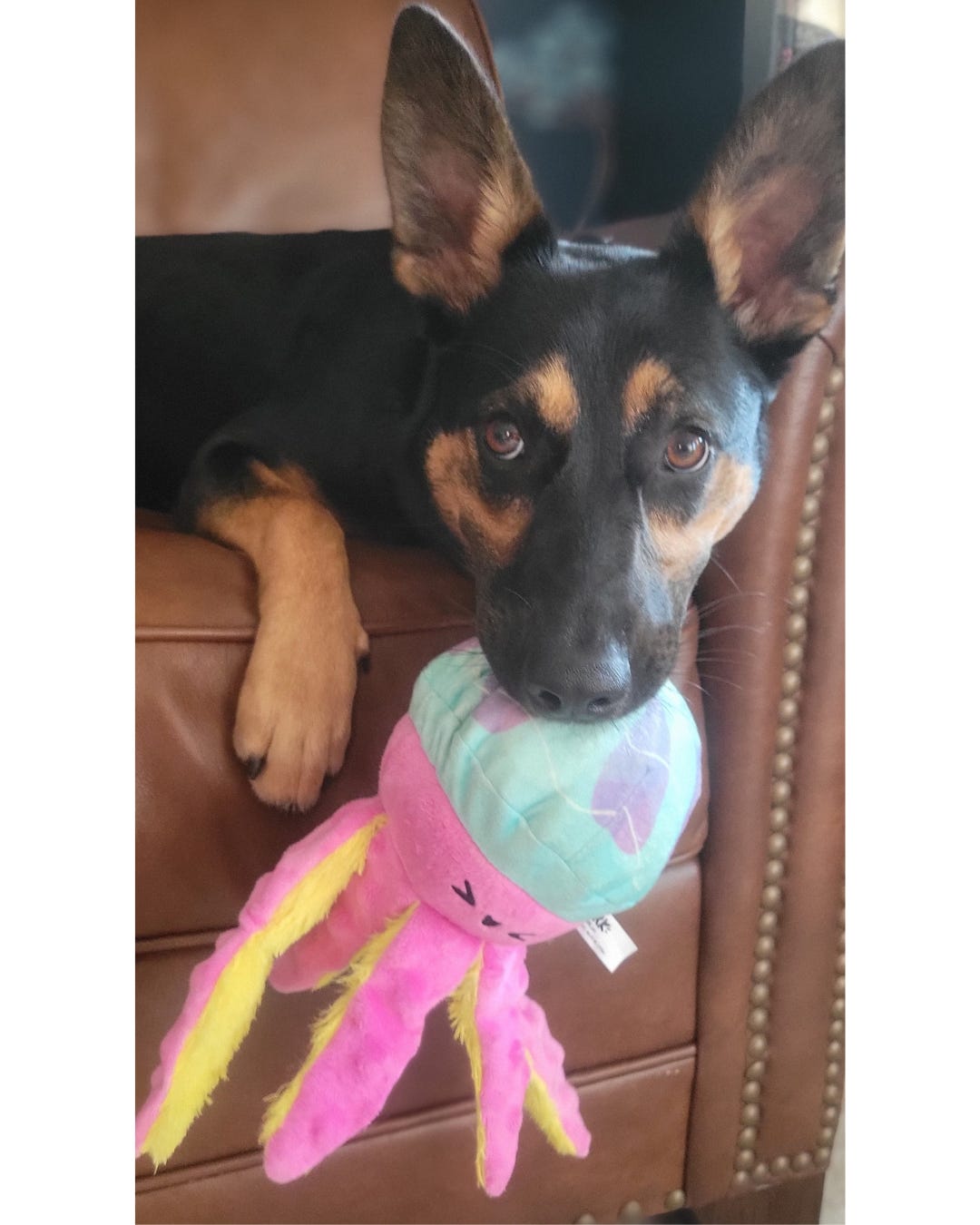 Okay, confession: her favorite toy is actually a jellyfish and not an octopus. 🤦🏻♀️ I am so embarrassed for messing that up, lol. You can get your very own Jelly Squish on Bark or Chewy.